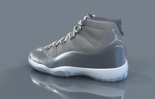 The NIKE Air 11 "Cool-Greys" were hand-modeled in Modo and digitally sculpted in ZBrush to ensure an accurate and detailed representation. Texture work involved sourcing high-quality reference photos to capture the shoe's authentic look and feel. Additional details, such as fine stitching and material variations, were meticulously painted and sculpted in ZBrush before being enhanced and refined in Substance Painter.